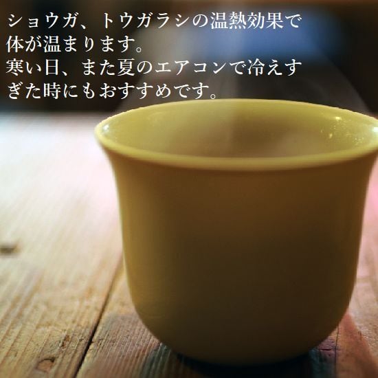 しょうが、とうがらしの風味がピリリときますが、飲みやすく美味しいお茶です。