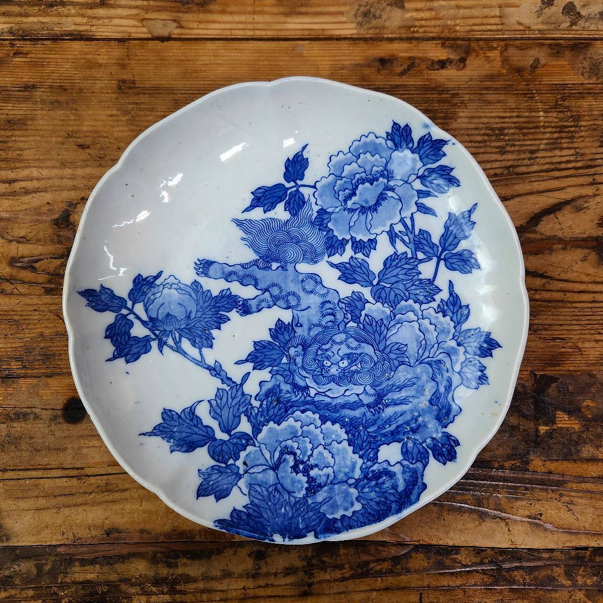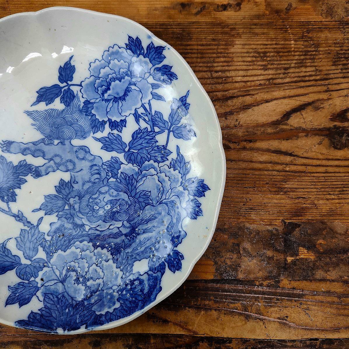 商品詳細 「伊万里焼 染付 唐獅子牡丹文 七寸輪花皿」