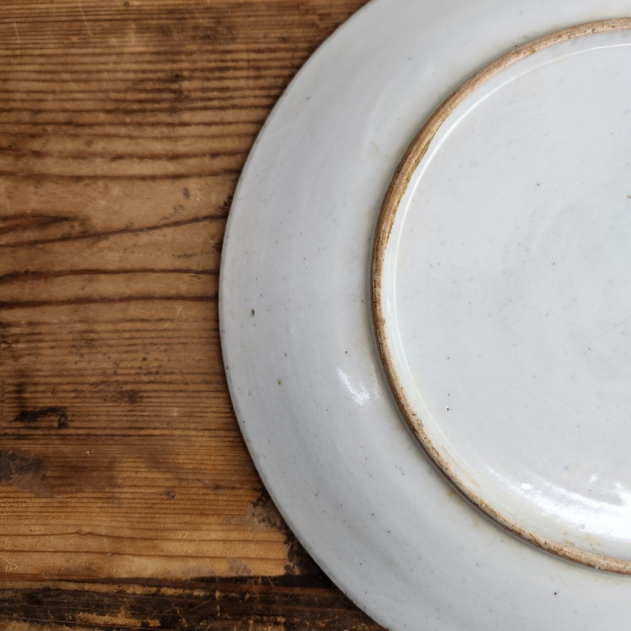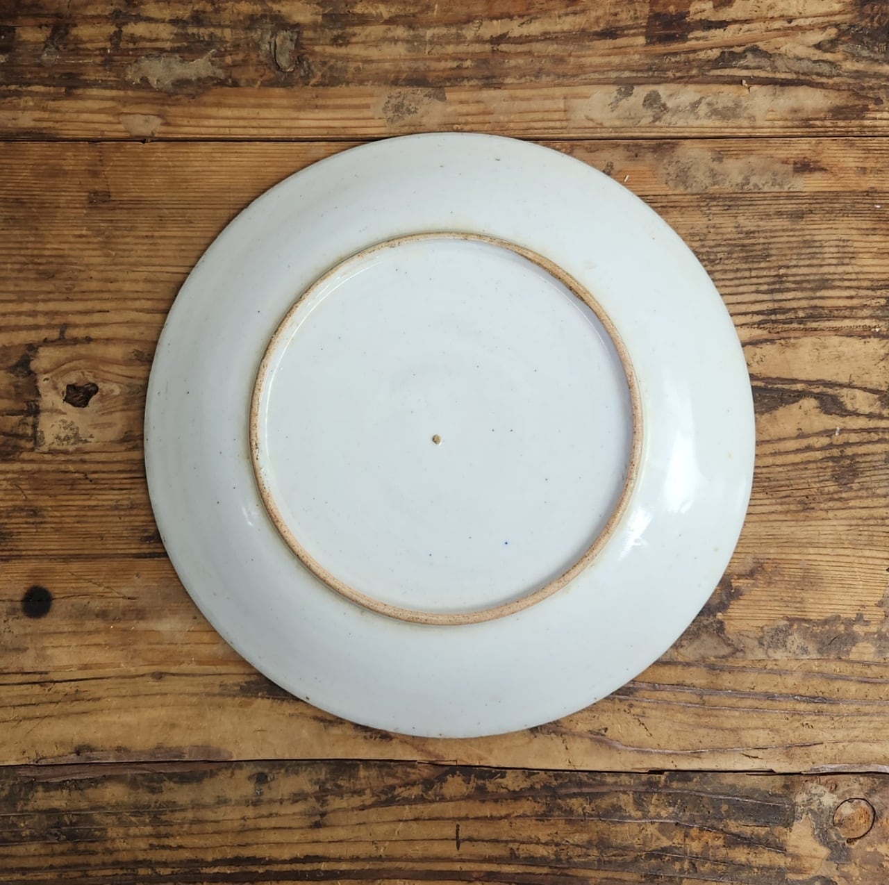 高台の中にポツンと小さな跡(目跡)や、やや粗削りな土の質感が見て取れます。これは当時の量産品ながらも、手仕事の温かみが残る磁器であることを示しています。